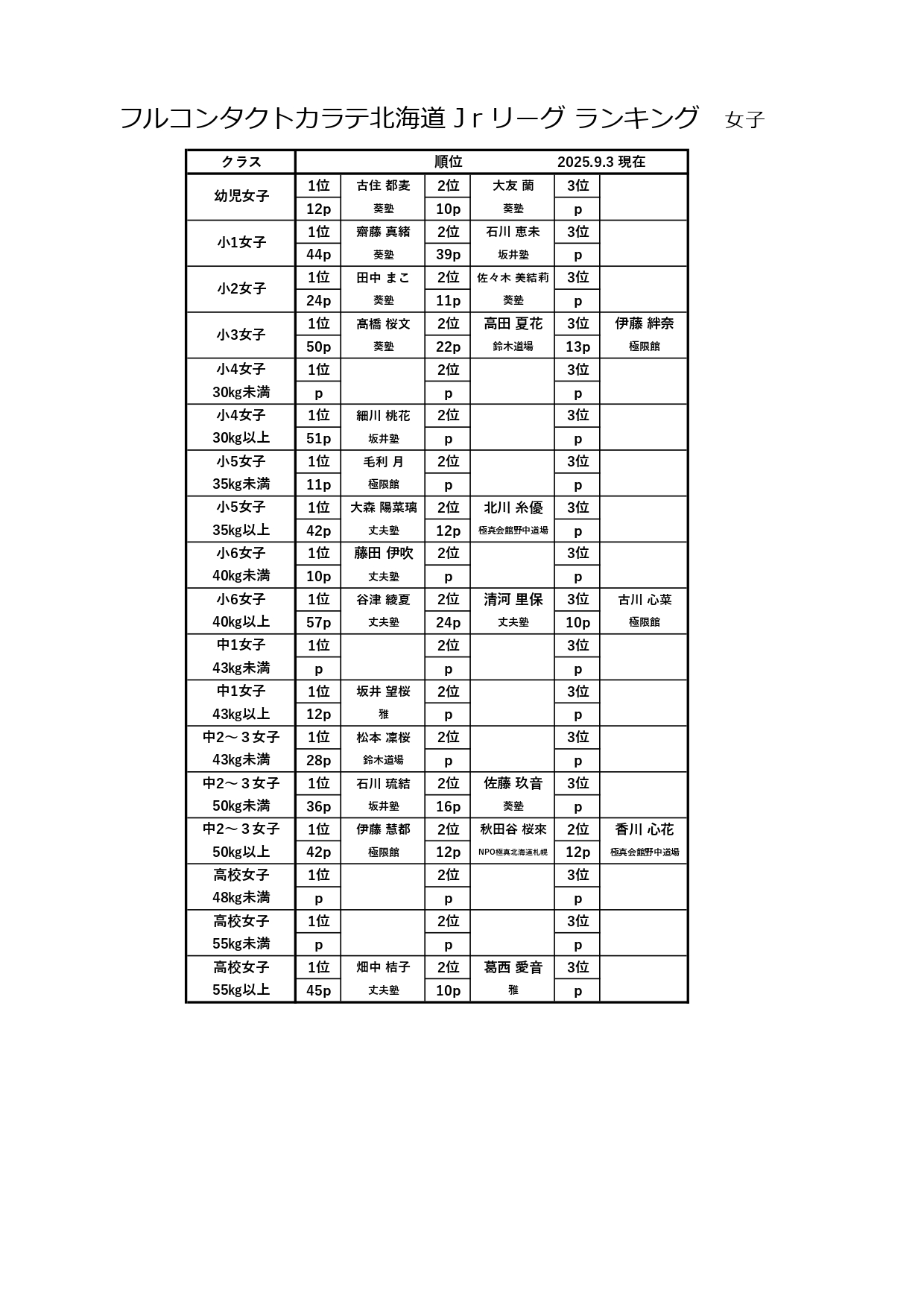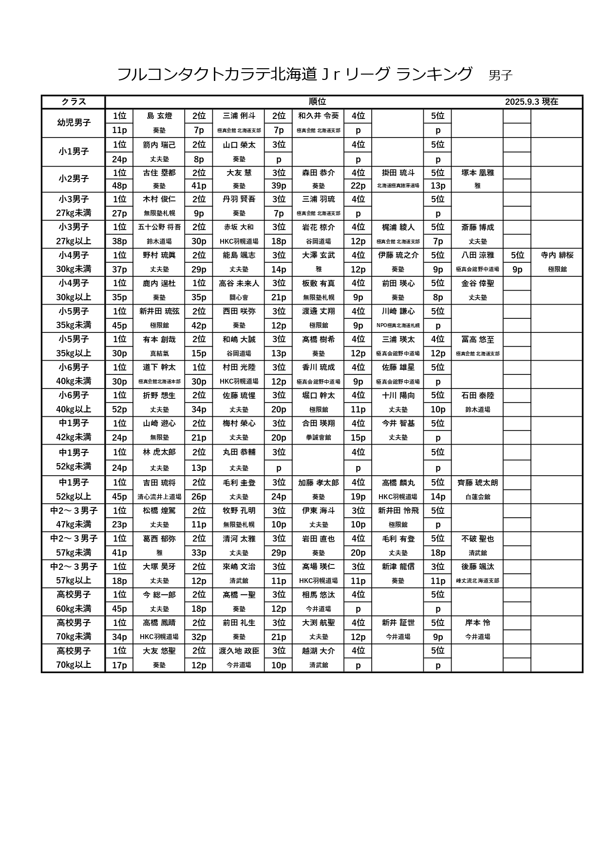フルコンタクトカラテ北海道Jrリーグ ランキング最新版 2025.9.3.pdf